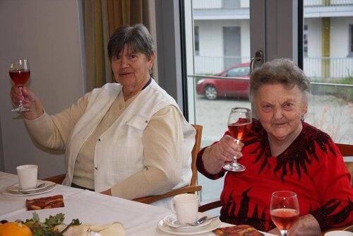 Der Nachmittag begann mit frischen Apfel- und Pflaumenkuchen aus der ZSC-Bäckerei, sowie Kaffee und einem Gläschen Wein. Danach schalten die Lieder durch das Haus und einige Bewohner schwangen das Tanzbein. Die anderen schunkelten oder sangen mit. Nette Fotos zeugen vom gemütlichen Nachmittag bei bester Laune. Es war wieder ein gelungenes Fest.