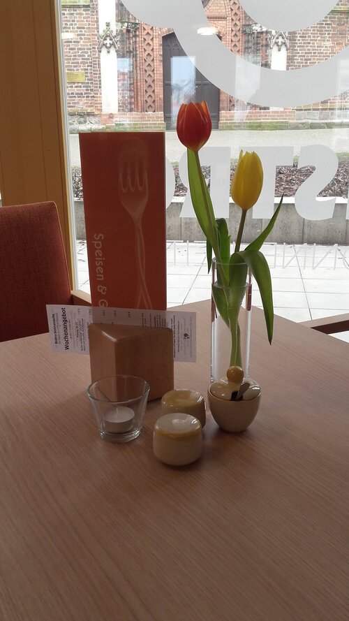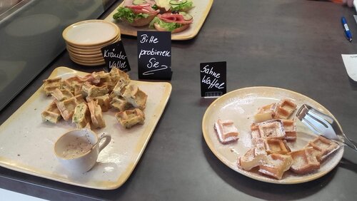 Probieren Sie in unserem Bistro hausgebackene Waffeln und Kuchen.