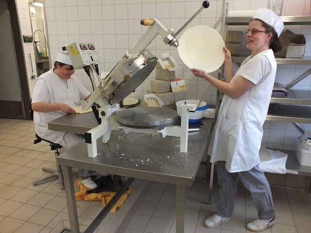 Nicht jeder Mitarbeiter der Hauswirtschaft ist für das Hostienbacken berufen. Es bedarf einer langen Einarbeitungszeit und Übung, den Teig mit Hilfe des Hostienbackautomaten herzustellen, anschließend auszustanzen und zu verpacken. Für die versandfertige Herstellung von 400 Oblaten benötigt man schon mal zwei Tage. Handarbeit im wahrsten Sinne des Wortes.