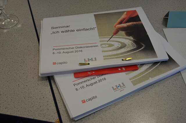 Vom 8. bis 10. August wurde in Züssow für alle Interessierten das mehrtätiges Seminar „Ich wähle einfach!“ angeboten. In Hinblick auf die Landtagswahlen im September 2016 in Mecklenburg-Vorpommern sollte das Thema der politischen Bildung – ein Lebensfeld, auf dem auch Menschen mit Behinderungen weiter gestärkt werden sollten, um ihre Rechte als Bürgerinnen und Bürger wahrnehmen zu können – für einige Tage in den Vordergrund rücken. Vor allem Bewohnerinnen und Bewohner bzw. Mitarbeitende der Werkstätten für Menschen mit Behinderung des Pommerschen Diakonievereins nahmen das Angebot gerne wahr.
