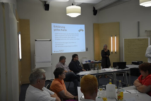 Mit capito Mecklenburg-Vorpommern, Teil eines Social Franchise Netzwerks und in Trägerschaft des Lebenshilfewerks Hagenow, wurde ein geeigneter Partner zur Umsetzung des Bildungsangebots gefunden. 19 Seminar-Teilnehmende erfuhren so drei Tage lang alles über Politik, Parteien und Wahlen – abwechslungsreich und in leichter Sprache. Mit praktischen Beispielen wurde verdeutlicht, wie Politik das Zusammenleben der Menschen regelt: Können 82 Millionen Menschen ohne Regeln zusammenleben? Nein! Und wie funktioniert das im Kleinen, zum Beispiel in der Familie oder in der Werkstatt? Richtig, jeder hat seine Aufgaben, es gibt Absprachen und Grenzen. Oder es gibt eine Interessenvertretung, also den Werkstatt, der mit der Geschäftsführung Kompromisse aushandeln kann. Neben alltagsnahen Beispielen, Filmen und Vorträgen gab es am letzten Tag auch eine „Probe-Wahl“, ein Rollenspiel mit Wahlhelfern, Wählern und einer Auswertung.