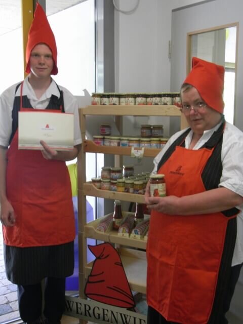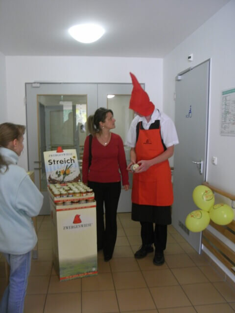 Am 07.05. und 08.05.2009 fand im Ostseeländer Hofcafé eine Verkostungsaktion der Firma Zwergenwiese statt. Die Firma, ansässig in Schleswig Holstein, feiert in diesem Jahr bereits ihr 30-jähriges Jubiläum. Diesen Anlass haben wir genutzt, um die Produkte der Firma vorzustellen. Die Angebotspalette reicht inzwischen von süß bis herzhaft. Was vor 30 Jahren am heimischen Herd aus Spaß begann, ist in der Zwischenzeit eine angesehene Naturkost Firma geworden. Alle Produkte werden mit Liebe und konsequent biologischen Zutaten unter großer Sorgfalt hergestellt. Produziert wird so frisch und natürlich ohne Veränderungen der einzelnen Rohstoffe. Zurzeit gibt es von Zwergenwiese 86 verschiedene Produkte in den unterschiedlichsten Geschmacksrichtungen. Die weniger süßen Fruchtaufstriche beinhalten 70% Fruchtanteil und werden lediglich mit Agavendicksaft gesüßt. Die herzhaften Aufstriche z. B. mit Joghurt verfeinerte sind laktose-, milcheiweiß-, gluten- und hefefrei. Die Mitarbeiter und auch die Kunden hatten viel Spaß. Die Produkte haben wir sehr gut verkauft.