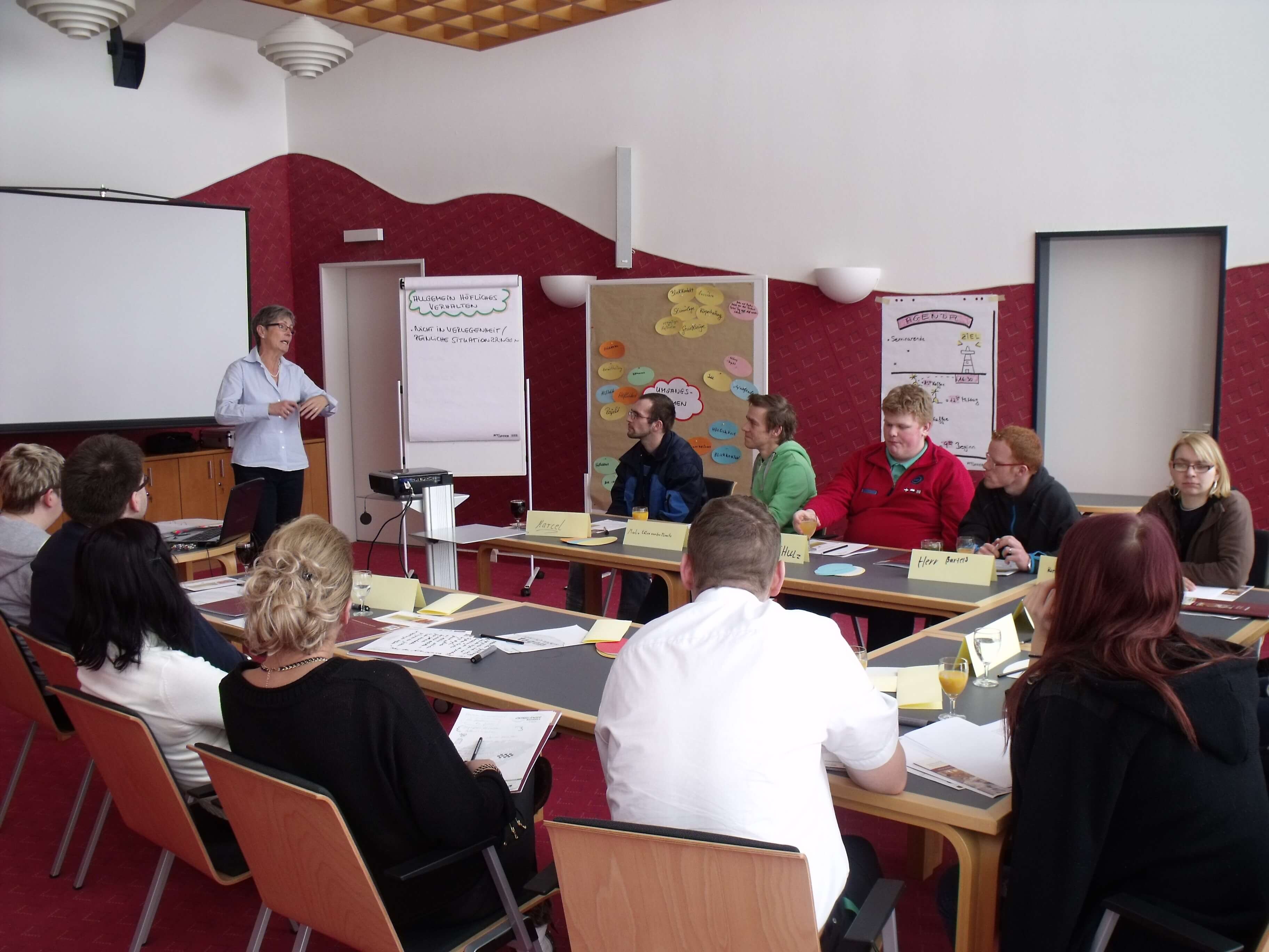 Sieben Mitarbeiterinnen und Mitarbeiter sowie sieben Fachkräfte waren der Einladung zu einem gemeinsamen Weiterbildungskurs ins BIOTagungshotel gefolgt. Kolleginnen und Kollegen des Hotels, Lichtblick, dem Hofladen und Bio Bistro Alte Sternwarte konnten durch Frau Rennack, einer erfahrenen Hotelberaterin, neue und teils bekannte fachbezogene Verhaltens- und Umgangsnormen auffrischen und diskutieren.