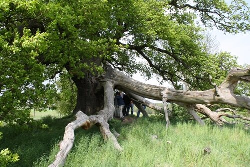 An einer uralten, unter Denkmalschutz stehenden Eiche war der nächste Stopp eingeplant. Dieser Baum lockte viele zum Klettern und versetzte uns ins Staunen über die Größe und das Alter von ungefähr 800 Jahren. Solche Bäume gibt es nur sehr selten. Auf einer schönen Wiese machten wir nun ausgiebig Rast. Dann konnten wir noch etwas Besonderes beobachten, nämlich einen Seeadler bei der Jagd. Im Hafen Rankwitz ließen wir uns den frischen Wind vom Achterwasser um die Nasen wehen. Einigen war inzwischen auch schon anzumerken, dass wir den ganzen Tag auf den Beinen waren und eine Menge gesehen und gehört hatten. Jeder suchte sich irgendwo ein Plätzchen und ruhte aus.