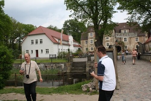 Nächstes Etappenziel war das Wasserschloss in Mellenthin. Die Betreiber des Hotels und der Gaststätte haben sich viel vorgenommen. Sie backen den Kuchen selbst, rösten die Kaffeebohnen und brauen sogar selbst Bier, das dann in der Gaststätte probiert werden kann. Im Anschluss besichtigten wir die nahe gelegene Dorfkirche. Ein sehr altes Backsteingebäude, das erahnen lässt, wie hier früher die Menschen aus dem Dorf liebevoll alles pflegten.