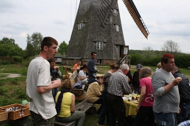 Von dort fuhren wir zur Holländer-Windmühle in Benz, die seit 1971 als Museum ausgebaut worden ist. Vor Ort konnten wir die großen Mühlräder bestaunen und uns erklären lassen, wie mühevoll früher das Korn gemahlen wurde. Einige von uns hatten nun schon richtig Hunger. Und vor der historischen Mühle gab es jetzt einen kräftigen Brunch. An der frischen Luft schmeckten das frische Brot, Wurst, fangfrischer Fisch, gekochte Eier, Honig und kräftiger Kaffee noch mal so gut. Gestärkt machten wir uns anschließend auf den weiteren Erkundungsweg quer über die Insel.
