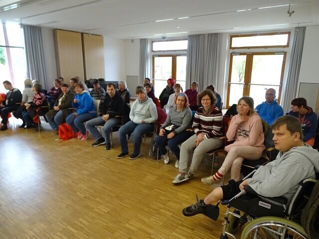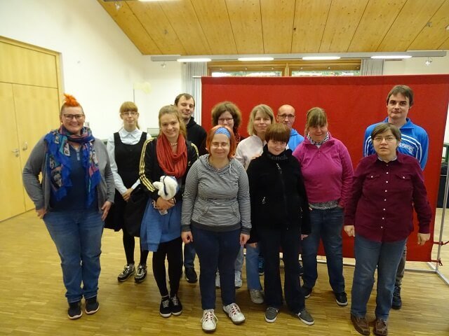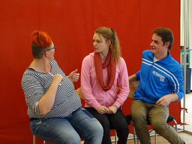 Simone und Mario von der theaterpädagogischen Werkstatt Osnabrück bezogen alle Teilnehmenden in ihre Stücke mit ein. Den Theaterpädagogen gelang es somit ein tabuisiertes Thema didaktisch soweit zu reduzieren, dass es von Menschen mit Behinderung verstanden wurde.
