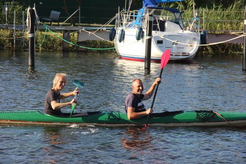 Am 03.07.2025 fand im Rahmen des Betrieblichen Gesundheitsmanagements eine Kajaktour auf dem Ryck statt. Bei bestem Wetter starteten die 15 Kollegen/innen und ihre Angehörigen am Nachmittag in der Nähe von Boltenhagen / Heilgeisthof und paddelten flussaufwärts in Richtung Greifswald Hafen.