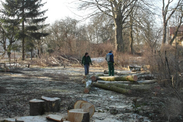 In diesem Jahr heißt es, die vielen Bäume auf einem ehemals bewohnten Grundstück des Pommerschen Diakonievereins e.V. in Züssow abzunehmen. Die Fläche soll zukünftig, wie schon einmal vor vielen Jahren, ihrer ursprünglichen Nutzung zur Verfügung stehen. Geplant ist die Neuanlage einer Streuobstwiese.