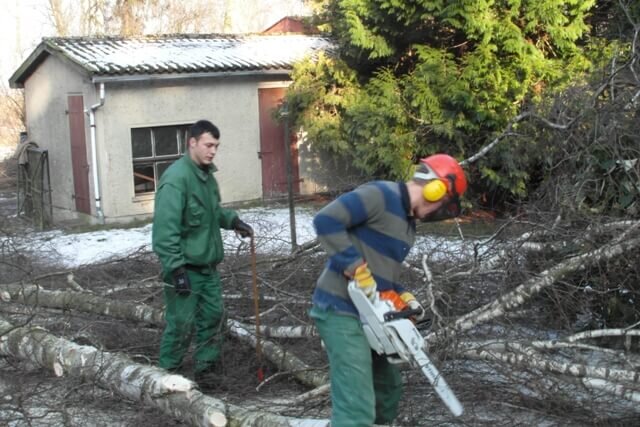 Vorrangig gilt es natürlich, den Verpflichtungen des Winterdienstes nachzukommen. Die Holzaufarbeitung findet in den Spätherbst- und Wintermonaten statt und ist für viele Mitarbeiter eine spannende und anstrengende Zeit.