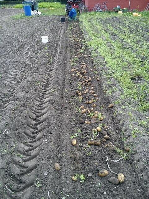 Durch das gute Wetter der vergangenen Tage ist es nun an der Zeit die Kartoffeln zu roden und einzulagern. Auf unseren guten Böden gedeihen sie prächtig und allein in dieser Woche haben die Mitarbeiter der Gärtnerei von der Hauptsorte „Agila“ knapp 2t eingebracht.