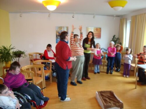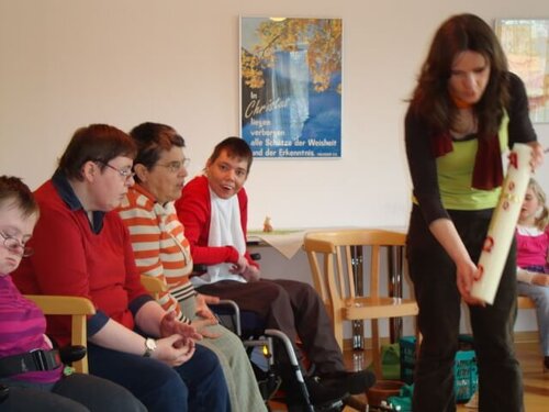 Abschließend wurden Sonnenblumensamen in Erde gelegt ,(diese Töpfe nahmen die Bewohner mit in ihre Gruppe), gemeinsam gesungen und der Segen gesprochen!