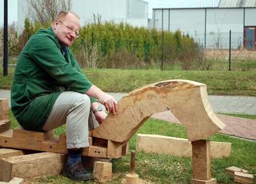 „Die eigentliche Arbeit fand schon im Frühling statt und die Skulptur ist ein Geschenk zum 20. Geburtstag des Kinderladens. Jetzt ist sie endlich fest installiert und richtig bespiel- und bekletterbar. Es war wieder sehr interessant für mich, eine Spielfigur für Kinder hatte ich bisher noch nicht gemacht. Mit den Künstlern aus dem PIX arbeite ich schon seit 2 Jahren an unterschiedlichen Projekten zusammen. Für diesen August haben wir uns gemeinsam auf ein Bildhauersymposium beworben und gegen 164 Bewerber auf nur 7 Plätze durchgesetzt. Wir werden in Stadthagen, Niedersachsen, eine Woche lang an drei Skulpturen arbeiten.“ berichtet Bildhauer Edwardas Racevicius.