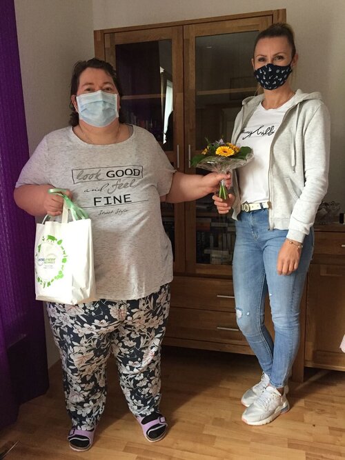 So machten sich Fachkräfte und Freiwilligendienstleistende aus der Greifenwerkstatt in den letzten Wochen daran, Briefe und Karten zu versenden, die neben persönlichen Grüßen auch kleine Aufgaben enthielten. Auch per Telefon wurden Kontakte geknüpft und Neuigkeiten ausgetauscht. Eine ganz besondere Freude war es uns, unsere Jubilare persönlich zu besuchen, um ihnen im Namen „ihres“ Arbeitsbereichs zu gratulieren und ein kleines Geschenk zu übergeben – natürlich unter strenger Einhaltung der geltenden Hygienebestimmungen.