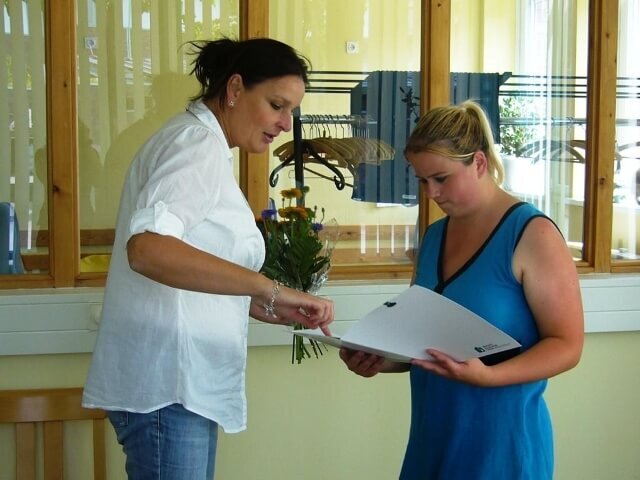 Als Teilnehmerin in der Beruflichen Bildung von Kopernikus hat Frau Doreen Bullerjahn als erste erfolgreich einen Qualifizierungsbaustein absolviert. Möglich wurde dies durch die kooperative Zusammenarbeit zwischen dem Pommerschen Diakonieverein e. V. (PDV) und dem BerufsBildungsWerk Greifswald (BBW). Am 16. Mai 2011 begann für Frau Bullerjahn ein ganz besonderer Abschnitt ihrer beruflichen Bildung. In der Ausbildungsküche beim BBW begann sie den Lehrgang zum Qualifizierungsbaustein „Zubereitung von einfachen Speisen“. Die Qualifizierung orientierte sich inhaltlich an Teilen des Ausbildungsrahmenplans für Köchinnen/Köche und ist von der Industrie- und Handelskammer Ostmecklenburg-Vorpommern (IHK) extra genehmigt worden. Sie dauerte insgesamt 7 Wochen und fand abwechselnd beim BBW und in der Greifenwerkstatt statt. Nachdem Frau Bullerjahn in Theorie und Praxis verschiedene neue Arbeitstechniken, wie z. B. die Zubereitung von Süßspeisen, Salaten und Marmeladen erlernt hat, hält Frau Bullerjahn, nach einer Abschlussübung nun stolz das Zertifikat in Händen, dass ihre Fähigkeiten bescheinigt.
