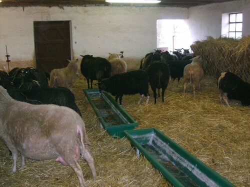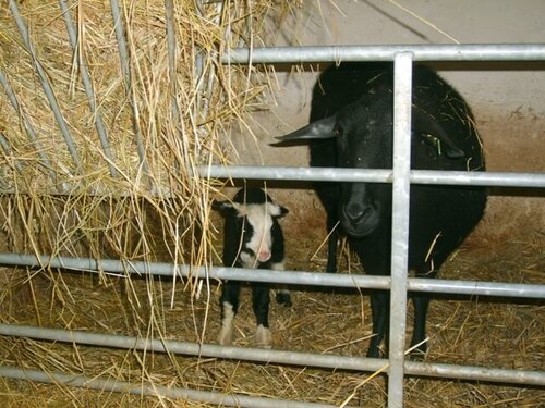 Für die Mitarbeiter ist es jeden Morgen spannend zu sehen, wie viele Neugeborene die Nacht wohl gebracht hat. Ein besonders lustiges und beliebtes Gesprächsthema ist die Zeichnung der schwarzweißen Lämmchen, deren Mutter schwarz und deren Vater weiß ist. Denn: Nicht die Farbeinheit ist Ziel unserer Zuchtarbeit, sondern gesunde Milch und vitale Tiere!