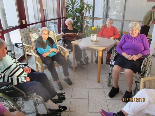 Die große Zeit des Karnevals mit den überaus freudvollen Impulsen beschwingten Miteinanders sind vorbei und dennoch können sich die Bewohnerrinnen und Bewohner des Nikolaiheimes in Gützkow über aufkommende Langeweile nicht beklagen. Natürlich erhalten auch dieser Tage hervorzuhebende Ereignis wie der Frauentag am 8. März oder der bevorstehende Auftritt der Schlagerkönige am Ende des Monats ihre gebührende Aufmerksamkeit. Doch auch die Alltäglichkeit des gemeinsamen Miteinanders sollte nicht zu einem leeren Loch der Langenweile werden und so lassen sich die Bewohner gern weiter jeden Dienstag in eine Erinnerungswelt mit echt scheinendem Kino verführen und besonders beliebt ist weiterhin die jeden Donnerstag stattfindende Singveranstaltung wo im großen Saal des Hause mal nach Gitarre und vor allem durch die Vielseitigkeit des Pianisten Herrn Zeitz inspiriert die Sangesfreudigkeit der Bewohnerrinnen und Bewohner vollends zur Geltung kommt.