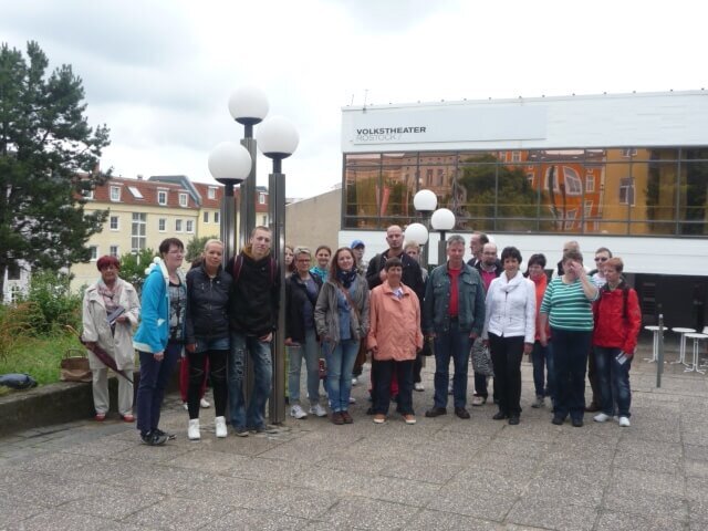 Nach einem köstlichen Mittagstisch ging unsere Reise weiter zum Volkstheater Rostock. Alle waren sehr aufgeregt, da es für die meisten Mitarbeiter der erste Theaterbesuch in ihrem Leben war bzw. das erste Musical. „Broadway Highlights“ zeigte einen Mix beliebter Songs aus verschiedenen Musicals, u. a. aus EVITA, CABARET, TITANIC, und DER ZAUBERER VON OZ. Die Untertitel zu den englischen Songs konnten durch eine Leuchtschrift über der Bühne mitgelesen werden.