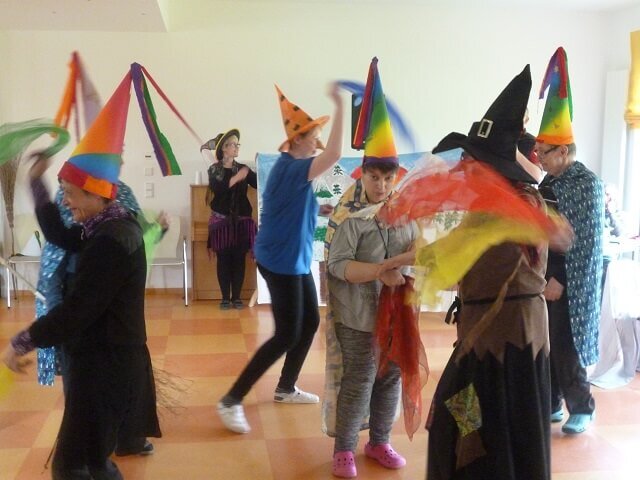 Neugierig und voller Spannung erwarteten die Bewohnerinnen und Bewohner der Greifswalder Wohnstätten das Ereignis. In einem kleinen Theaterspiel erfuhren die Teilnehmer des Festes die Bedeutung der Walpurgisnacht. Das Theaterspiel wurde mit den Mitarbeiterinnen und Mitarbeitern sowie den Bewohnerinnen und Bewohner der Wohngruppe 1 und Wohngruppe 2 eingeübt. Mit Tanz und Musik, sowie mit gebastelten Kostümen und Bühnenbilder wurde erläutert, dass in der Walpurgisnacht die Hexen und die Hexenmeister den Winter verjagen und den Frühling begrüßen.