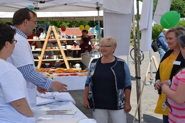 Die Stimmung auf dem Markt der Möglichkeiten war also ausgesprochen gut. Viele Gäste nutzten die Chance und ließen sich durch das Atelier PIX führen, testeten ihr Wissen beim Bereich „pflegen“, bestaunten die Keramikarbeiten, genossen eine frisch gegrillte Bratwurst oder empfanden einmal den Alltag einer nicht sehenden Person beim „Blindenparcours“ nach.