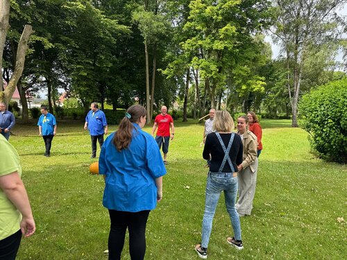Was normalerweise eine kleine Runde ist, entwickelte sich dieses Mal zu einer regelrechten Großveranstaltung. Pierre, der Trainer vom IGT, war sichtlich beeindruckt, als er sah, dass nicht nur die Mitarbeitenden im Park des Ostseeländer Hotels aktiv wurden, sondern auch die Teilnehmer zweier Tagungsgruppen sich anschlossen.