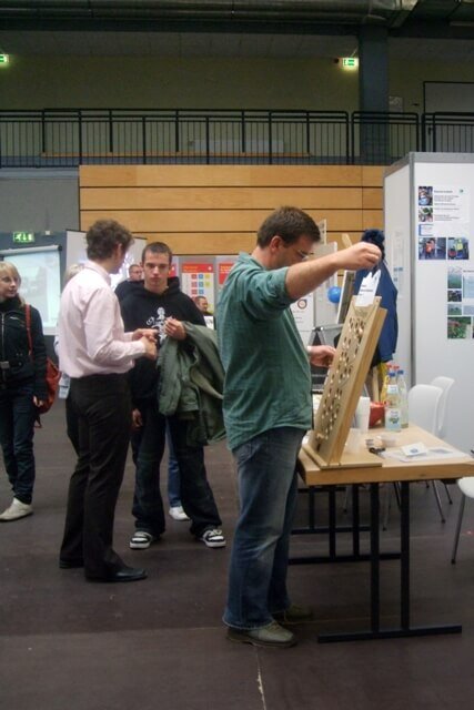 Der Sonntag zeigte sich mit idealem Messewetter (Regen) von seiner besten Seite und so war die Veranstaltung gut besucht. Am Stand der Werkstätten herrschte ein reges Treiben und die beiden Standbetreuer Constanze Dietze und Christoph Krumbeck hatten gut zu tun bzw. viele Fragen zu beantworten. Ein Highlight des Standes war das Geschicklichkeitsspiel „Himalaya“, mit dem viele Messebesucher erfolgreich geködert werden konnten. Dies war häufig der Anfang weiterführender, interessanter Gespräche.
