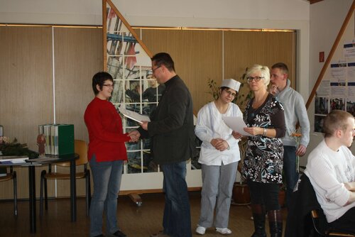 Der Speisesaal der Greifenwerkstatt war voll – denn zum Gratulieren waren zahlreiche Kollegen der Arbeitsgruppen gekommen. Persönliche Worte fanden die Fachbereichsleiter und Bildungsbegleiter, die den Absolventen ihre Urkunden und Zertifikate von KOPERNIKUS und auch den Werkstattvertrag überreichten. Der Werkstattrat gratulierte ebenfalls herzlich.
