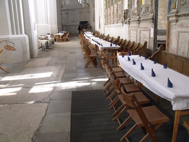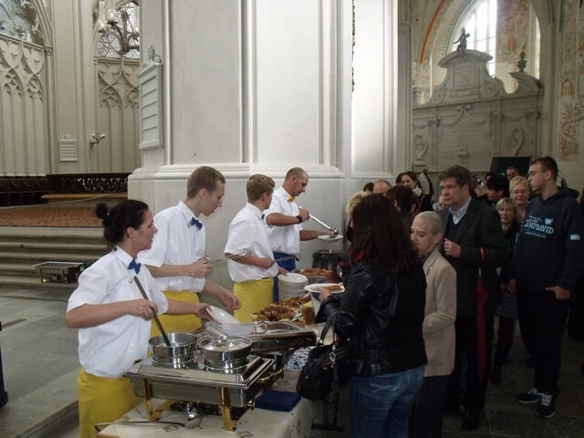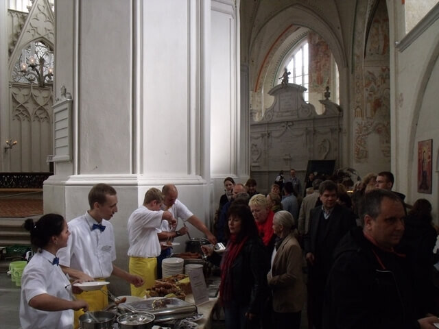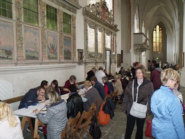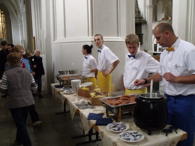 Den Herausforderungen eines ungewöhnlichen Ortes für ein Mittagscatering hatte sich unser Lichtblick am 26.09.2013 zu stellen. Im Greifswalder Dom Sankt Nikolai waren ca. 80 Mitarbeiterinnen und Mitarbeiter der Lobetaler Werkstätten zu ihrem jährlichen Betriebsausflug zu Gast. Da im Lichtblick zur Mittagszeit bekanntermaßen kaum Platz ist, verlagerten wir den Service kurzerhand vor Ort.