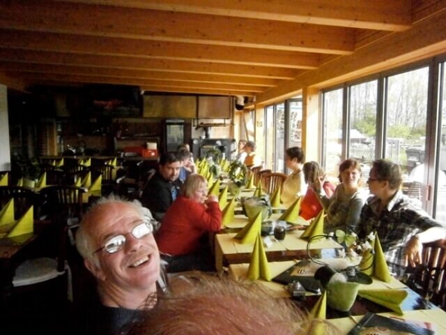 Zurück auf dem Bauernhof besuchten wir die Glaswerkstatt. Dort könnten wir erst einmal die wunderschönen Farben und Formen bewundern. Neugierig, wie all diese schönen Sachen hergestellt werden, durften wir anschließend erleben, wie kleine Kunstwerke aus Glas und Blei entstehen. Wir erfuhren wie die großen bunten Fenster in einer Kirche hergestellt werden. Diese Farben und Formvielfalt begeisterte besonders die Kolleginnen und Kollegen der Näherei. In ihrer täglichen Arbeit haben sie ja viel mit Farben und Formen zu tun. Mit frisch gebackenem Rhabarberkuchen endete unser erlebnisreicher Tag auf dem „Müritzer Bauernmarkt“. Die bequeme Heimfahrt lies uns alle auf einen wunderschönen gemeinsamen und interessanten Tag zurückschauen.