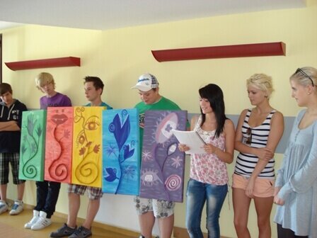 In der letzten Schulwoche fand dann im Nikolaiheim die Präsentation der Bilder statt. Die Schüler stellten ihre Bilder vor und erzählten uns ihr Anliegen mit dem entsprechendem Bild.