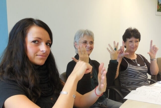 Die KopAk hat interessierte Mitarbeiter, Eltern, Fachkräfte und Sozialarbeiter eingeladen mit dem Hör-Kompetenzzentrum Vorpommern in Greifswald die deutsche Gebärdensprache zu erlernen.