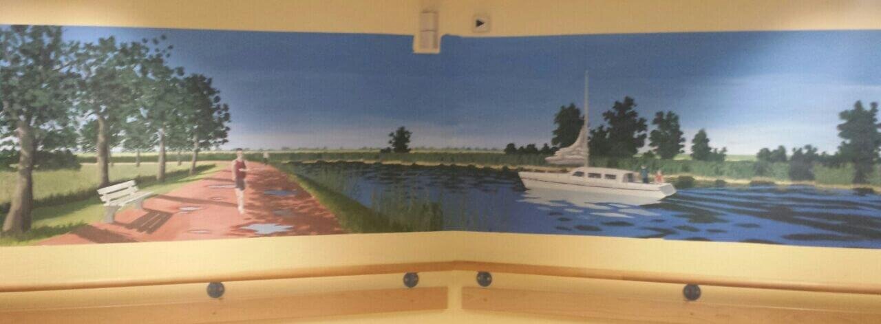 Nachdem vor etwa 17 Jahren im Gottfried-Janczikowsky-Haus in Züssow zum ersten Mal ein großformatiges Wandgemälde entstand, wurde nun in der 2.Etage ein neues angelegt. Es zeigt den sommerlichen Ryck bei Greifswald und lädt Bewohner, Mitarbeiter und Besucher dazu ein, Blicke und Gedanken in der Tiefe der Landschaftsdarstellung schweifen zu lassen. Gemalt wurde das Bild von Rainer Koch, welcher aus Berlin kommt und seit 2013 in Greifswald lebt, um sich an der Ernst-Moritz-Arndt-Universität zum Lehrer für Geographie und Kunst ausbilden zu lassen. Zu dem Gemälde sagt er: "Zuerst freue ich mich, dass das Bild den Bewohnern aber auch dem Personal im Haus so gut gefällt. Ich habe viel Anerkennung bekommen. Außerdem möchte ich mich für die sehr angenehme Zusammenarbeit mit dem Team im Haus bedanken. Am Anfang war ich mir nicht ganz sich, ob das Bild gelingen würde. Es war eine neue Erfahrung für mich auf einem großem Format von 4 x 1 m zu arbeiten. Ich habe etwa 4 Arbeitstage benötigt, um das Bild fertig zu stellen."