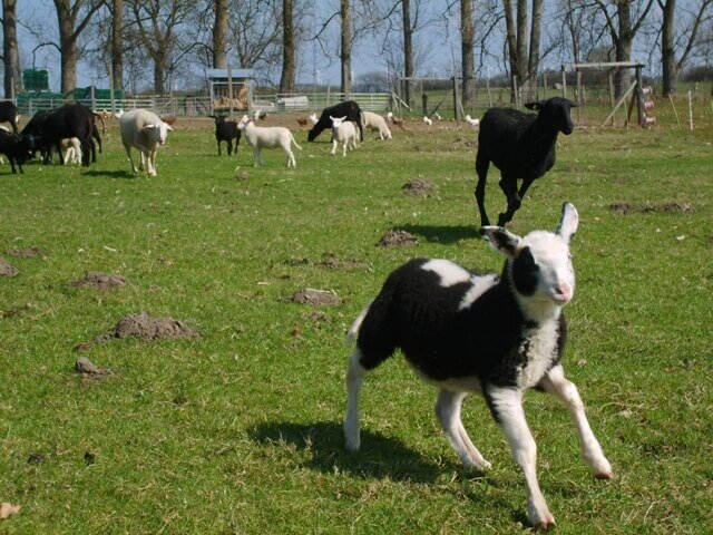 Mit Beginn der Vegetationszeit Anfang April erhalten die Schafe ihren täglichen Weidegang. Für die Mütter beginnt jetzt eine turbulente Zeit. War ihr Nachwuchs in den Ställen schon recht übermütig, gibt es jetzt ein Toben und Tollen, das nur schwer zu bändigen ist. Die täglichen Ausflüge der Tiere widerspiegeln als Gesamteindruck pure Lebensfreude.