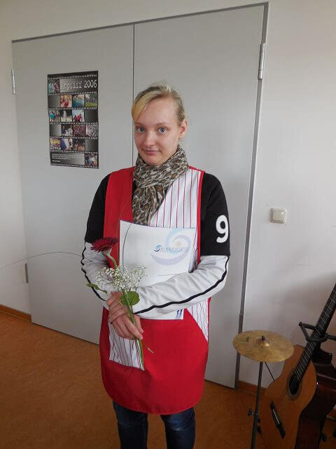 In der Feierstunde erhielt Frau Uteß die Urkunde von KOPERNIKUS und auch der Werkstattvertrag wurde ihr vom Integrationsfachdienst überreicht. Beglückwünscht wurde Frau Uteß auch von Frau Anwar, die im Namen des Werkstattrates ihre neue Kollegin in den Reihen begrüßte und eine Blume übergab. Viele Arbeitserfolge und dabei viel Freude wünschen wir Frau Uteß für ihre berufliche Zukunft.