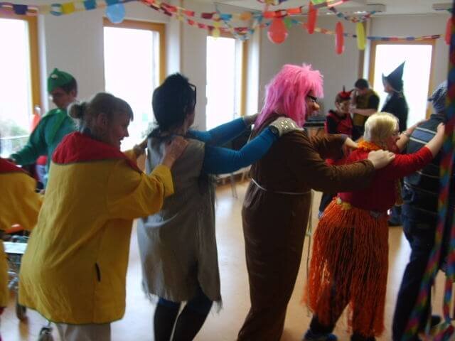 So riefen zur Eröffnung der Faschingsfeier in der Betriebsstätte Züssow alle Teilnehmenden schlichtweg das, was ihnen bekannter von beidem war und somit leichter über die Lippen kam. Dies tat dem stimmungsfrohen Verlauf in den folgenden Stunden jedoch keinen Abbruch. Es wurde gesungen, geschunkelt, getanzt, erzählt und natürlich viel zusammen gelacht – schlichtweg Fasching gefeiert.