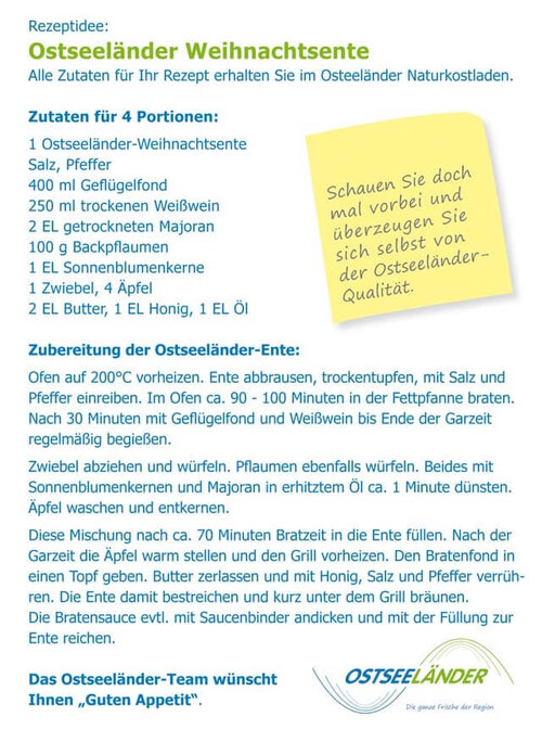 Bestellen Sie Ihre Ostseeländer Weihnachtsente: