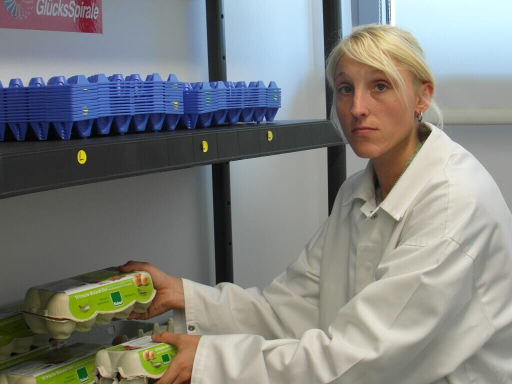 Dank Förderung durch die GlücksSpirale werden mit Hilfe modernster Technologie die Eier mehrmals täglich sortiert und verpackt. Anfänglich hieß es für Mitarbeitende und Fachkräfte sich mit den neuen Anforderungen an die Arbeitsabläufe und Dokumentationen vertraut zu machen und den hohen Stellenwert der hygienischen Anforderungen gerecht werden. Nach einem überschaubaren Zeitfenster ergaben sich zusätzlich mindestens 3 niederschwellige bis anspruchsvolle Arbeitsangebote für Mitarbeitende des Bauernhofes. Interessant und begehrt, da neben der Sortierung und Verpackung auch die mathematischen Kenntnisse eingebracht werden können.