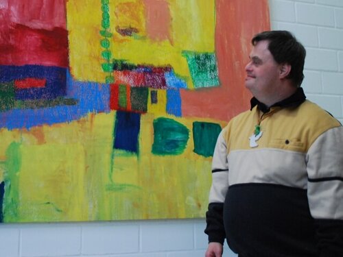Leserbrief von Beate Wurster: „Unsere Ausstellungseröffnung war ein voller Erfolg. Sie ist am 31.03. eröffnet worden. Besonders mein Teebeutelbild gefiel allen! Die Ausstellung ist bis zum 19.05. täglich geöffnet. Jeden Tag von 10 Uhr bis 17 Uhr ist offen. Das Teebeutelbild war der Renner! Es ist mal was anderes. Für mich ist es Kunst. Was meint Ihr, was das für Arbeit ist und war. Ich habe mir viele Geschichten und Sprüche ausgedacht. Dann wurden die Teebeutel grundiert und bemalt. Dann mussten sie trocknen. Danach wurden sie beschrieben. Das war gar nicht so einfach. Ich war auch mal müde. Ich bin stolz auf mich, dass ich alles geschafft habe. Wenn man bedenkt, dass behinderte Menschen es waren, die die großen Bilder gemalt haben. Da steckt eine Leistung dahinter. Die Geschichten handeln von Tieren, Menschen, Frühling, Ostern, Himmelfahrt und Pfingsten. Es war auch eine Geschichte über einen Bären und einen Jungen dabei. Es waren viele Menschen da. Es gab ein Buffet, dann hatten wir Musik von der Gruppe ‚Blind Date’. Die Musik war wunderbar, aber die anderen Bilder waren auch schick.“