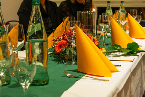 Alle Jubilare wurden namentlich aufgerufen und erhielten neben Glückwünschen durch den Vorsteher und die Bereichsgeschäftsführer eine Rose. Für das 25-jährige Dienstjubiläum wurden ein eigens gefertigtes Kronenkreuz und eine Ehrenurkunde überreicht. Anschließend konnte bei Buffet und Getränken an den festlich geschmückten Tischen in den Farben der Unternehmensgruppe gefeiert werden.