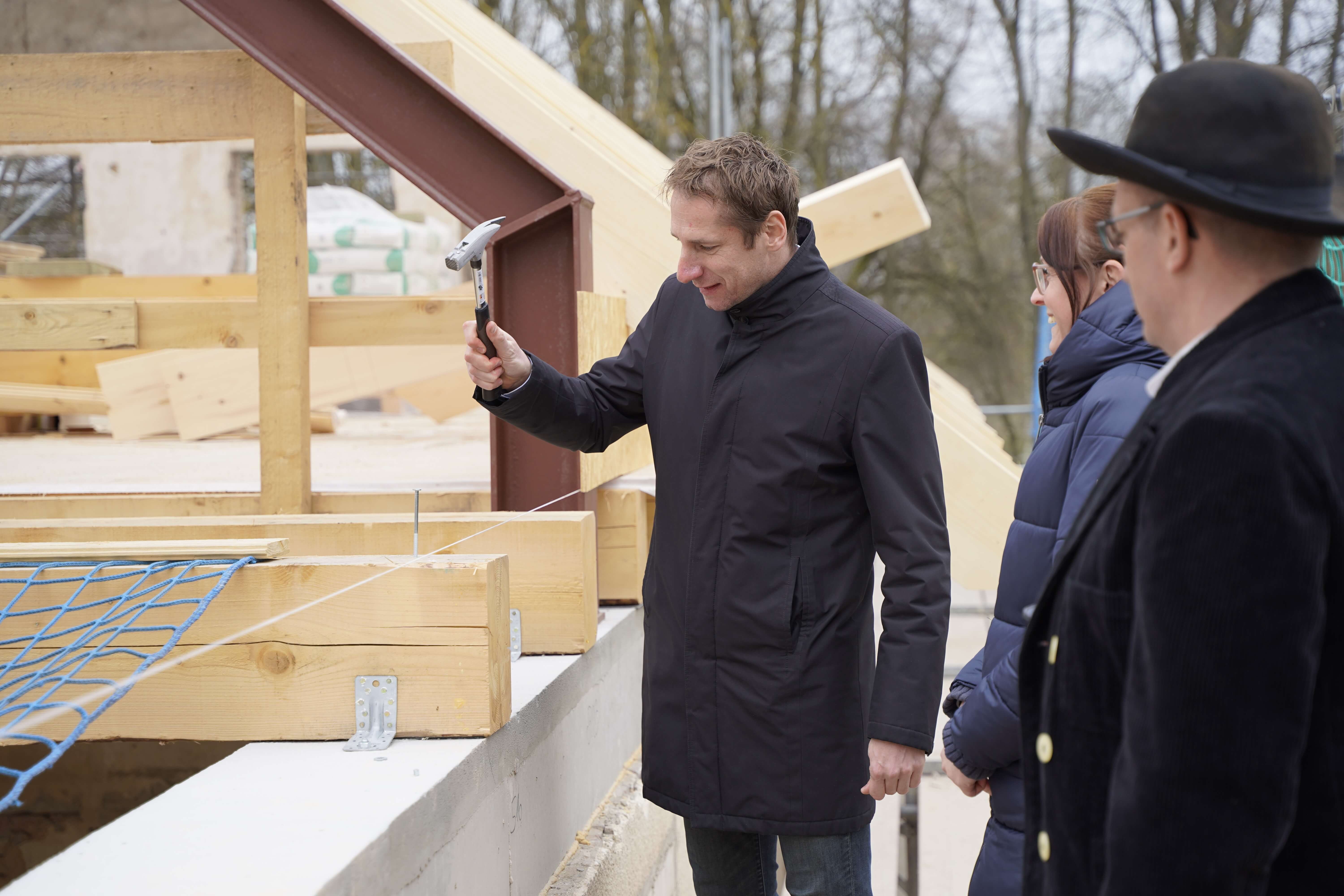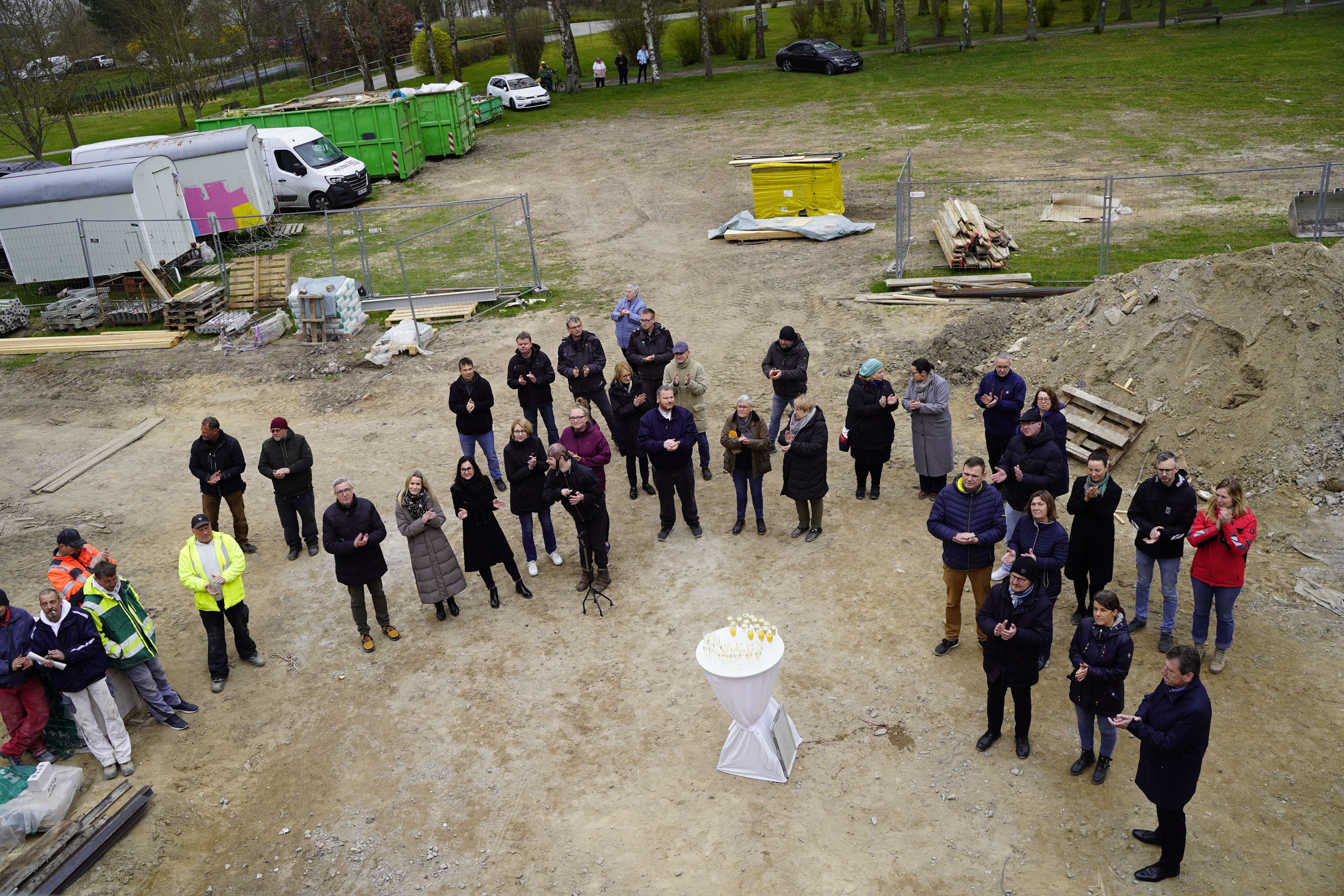 Traditionell wurde mit dem Richtspruch, um den Segen für das Haus gebeten und auf das Wohl des Bauherren und der künftigen Bewohner und Nutzer angestoßen. Alle drei Gläser gingen beim anschließenden Wurf vom Dach zu Bruch - damit steht das künftige Angebot wohl bereits jetzt unter einem guten Stern.