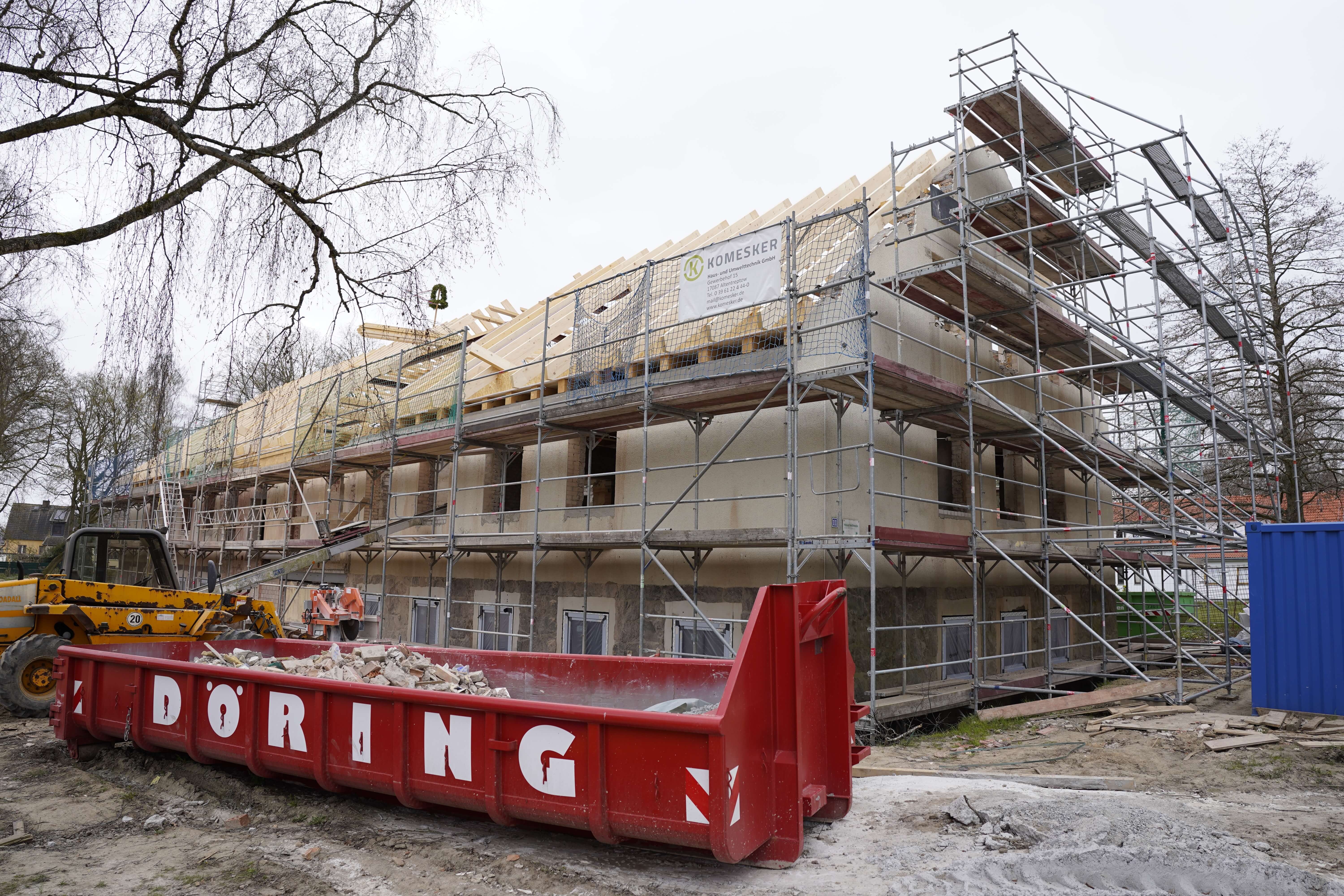 Wer heute über das Gelände des Pommerschen Diakonievereins in Züssow spazieren geht, vermag nicht zu glauben, dass das Haus Bethesda Ende diesen Jahres die ersten Mieter in den geplanten Wohnungen und Gäste in der ebenfalls im Gebäude geplanten Tagesgruppe begrüßen wird. Aber noch vor wenigen Wochen mochte auch noch niemand so richtig daran glauben, dass zum geplanten Richtfest am 11.04.2025 tatsächlich auch schon der neue Dachstuhl aufgesetzt sein würde. Umso optimistischer zeigte sich der Kaufmännische Vorstand, Steffen Jaeckel, beim heutigen Richtfest, dass die Baumaßnahmen auch weiterhin im Zeitplan umgesetzt werden können.