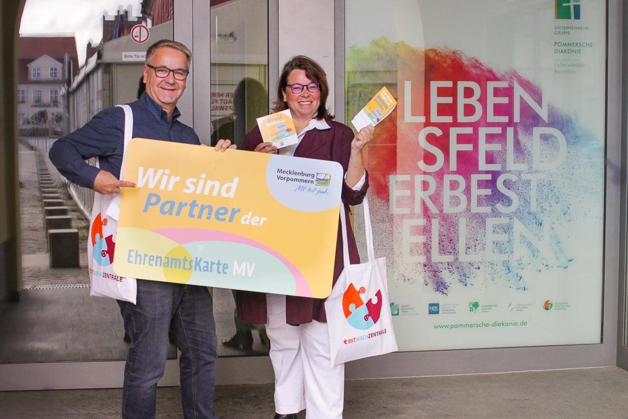 Es ist so weit! Der Pommersche Diakonieverein ist seit einigen Tagen Partner der Ehrenamtskarte des Landes Mecklenburg Vorpommern. Den Inhaber:innern der Karte werden in vielen Einrichtungen im Land M-V Vergünstigungen gewährt oder besondere Angebote gemacht.