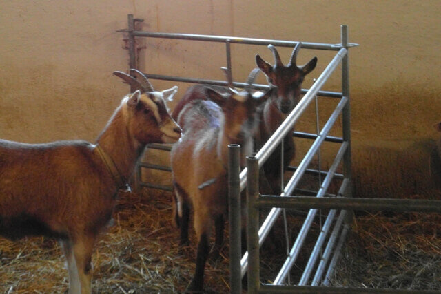 Bei den Ostfriesischen Milchschafen erfolgen in der Regel Mehrlingsgeburten. Da ist es schon eine Herausforderung für die jungen Schafmütter, ihre Lämmer alleine an der Stimme zwischen den ganzen dringenden Rufen des Nachwuchses wieder zu finden. Die friedliche Ruhe im Schafstall wird von den 3 Ziegendamen wahrgenommen und nur für kurze „Rangkämpfe“ unterbrochen. Neugierig betrachten sie das Geschehen, lassen sich jedoch mit ihrem eigenen Nachwuchs noch Zeit.