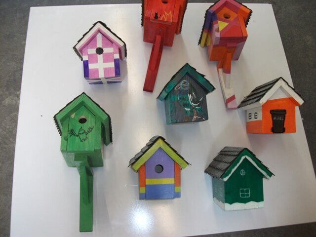 Das Tischlereiteam probierte, studierte und diskutierte mehrere Ideen und Vorschläge. Somit kam das Projekt „Vogelhaus“ in die engere Auswahl. Erste Entwürfe wurden skizziert, Maße festgelegt, Zuschnittlisten erstellt und dann erfolgte die Umsetzung der ersten Nistkästen in der Werkstatt. In Kooperation mit unseren Bildungsgruppen, die das kreative Gestalten gern übernommen haben, ist es dann zu beachtlichen und letzt endlich auch zu begehrten Nistkästen (Schaukästen, Dekoration, Blickfang und Versteck) gekommen. Unsere Mitarbeiter sind stolz auf ihre selbst entworfenen und gestalteten Nistkästen. Es hat allen viel Freude bereitet. Die Umsetzung diente gleichzeitig als Ansporn für neue Projekte.