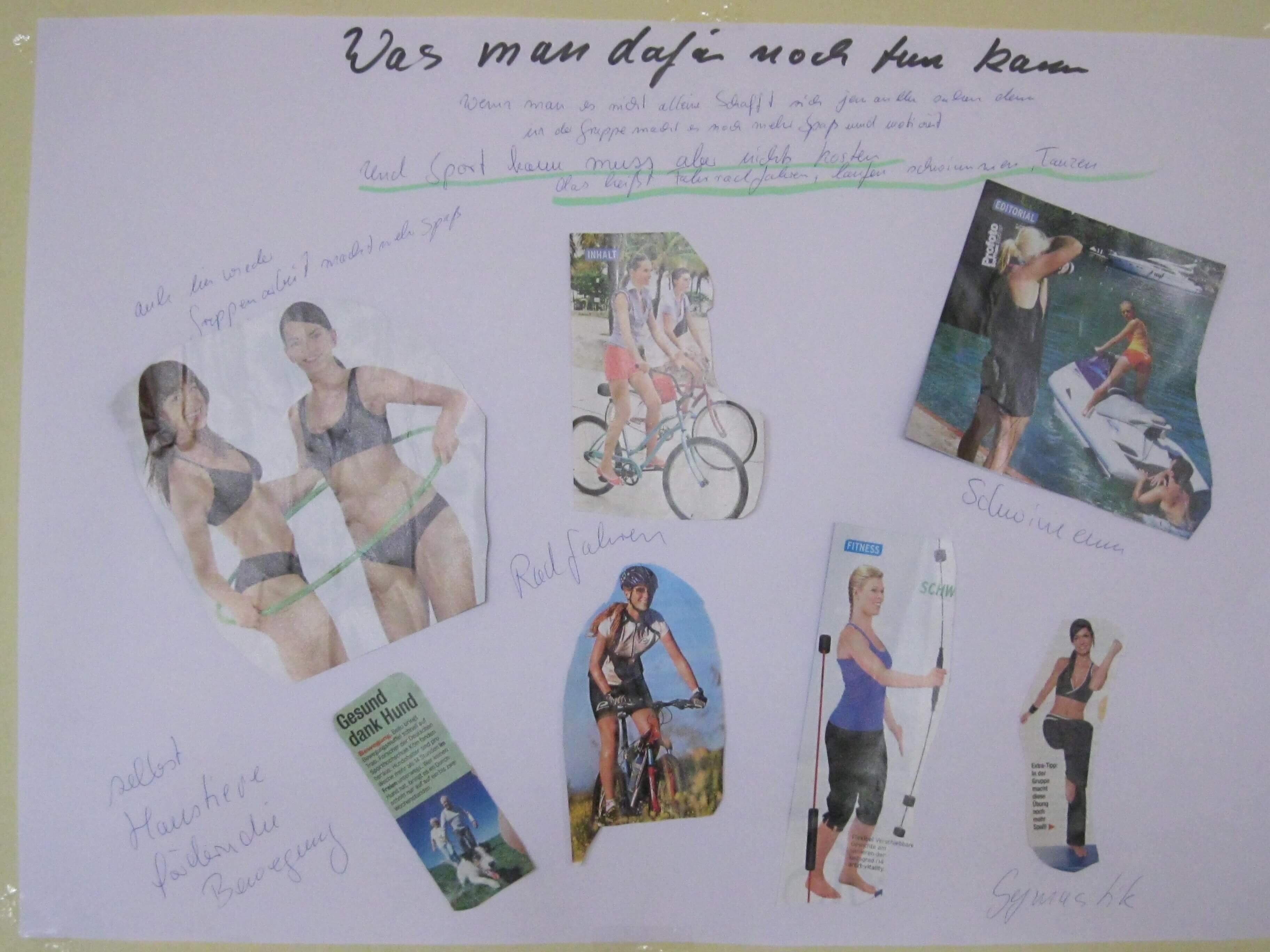 In einer Projektwoche wurde dazu in Gesprächsrunden über gesunde Ernährung, Sport und Entspannung gesprochen. Diese Themen wurden von den Besuchern in Kleingruppen vorbereitet. Die intensive Auseinandersetzung mit den Projektinhalten wurde von vielen Besuchern als große Herausforderung erlebt, aber auch als lehrreich. Neue Perspektiven haben sich aufgezeigt und einige Besucher haben sich nun neue Ziele für ihre Lebensgestaltung gesetzt, die sie langsam auch mit Hilfe des Tagesstättenangebotes umsetzen möchten.