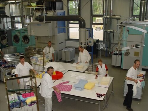 Vor der Mittagspause wurde die Wäscherei der Ostseelandwerkstatt von alle interessierten Teilnehmern besichtigt. Alle waren sichtlich beeindruckt, besonders die Wäschereileiter bzw. Werkstattleiter aus den Werkstätten für behinderte Menschen über die Bauweise, den technischen Stand und nicht zu vergessen der Einhaltung der Hygienevorschriften sprich Sauberkeit in den Produktions- und Versorgungstechnischen Nebenräumen.