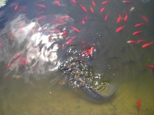 Aber nicht nur den Wissensdurst konnten wir im Park stillen, sondern uns auch aktiv betätigen. Auf Pferden reiten, mit einem Boot von einer Riesenrutsche ins Wasser rasen, Mit der Seilbahn fahren oder sich in der Achterbahn durchrütteln lassen. Alles war möglich, wenn man sich nur traute. Bei einer Wanderung um die Insel Rügen herum waren Unmengen von Goldfischen unsere Begleiter. Am Ausgang vom Park konnte sich, wer wollte, noch ein Andenken mitnehmen. Dann ging es mit dem Bus zurück nach Greifswald.