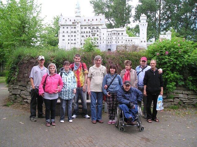 Da alle 100 Modelle genau im gleichen Maßstab von 1:25 nachgebaut wurden, kann man sich gut eine Vorstellung von den wahren Ausmaßen der Bauwerke machen. Nach der Rundfahrt hatten wir die Möglichkeit, zu Fuß in Ruhe alle Objekte zu betrachten. Besonders René war begeistert, denn aus Büchern kannte er schon viele der berühmten Bauwerke. Er entdeckte viele Details, die originalgetreu nachgebaut worden waren. Beeindruckend ist auch die Nachbildung der Insel Rügen. Von erhöhten Aussichtsplattformen aus kann man sich einen guten Überblick über die Lage der Dörfer und Städte verschaffen. Aber alle waren sich darüber einig, dass Schloss Schwanstein das schönste Modell im Park ist.