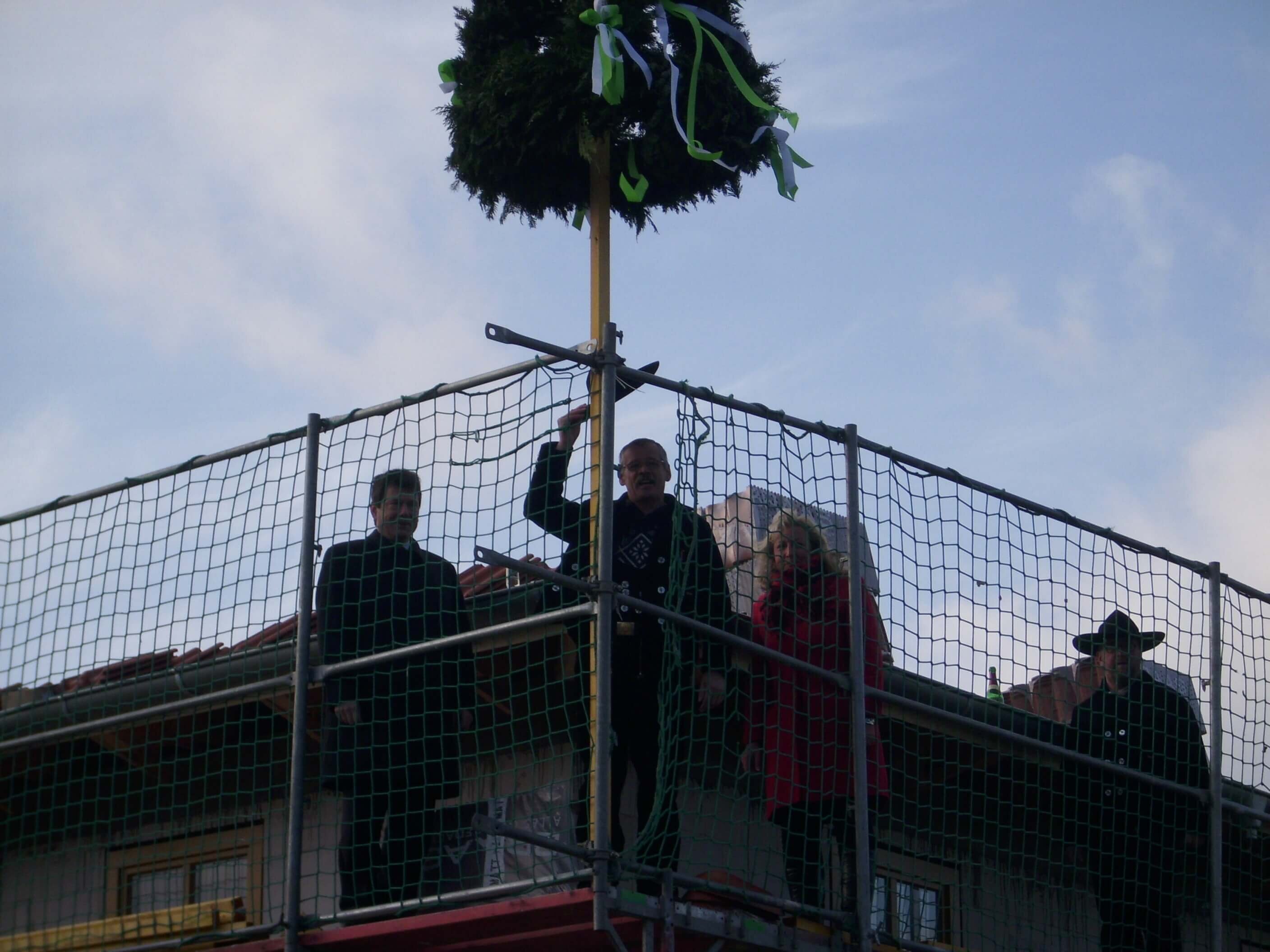 Unter der Richtkrone sprach der Richtmeister seinen Richtspruch und dankte dem Bauherren, den Architekten und Handwerkern. Er bat um Gottes Segen für das Haus und seine späteren Bewohner.
