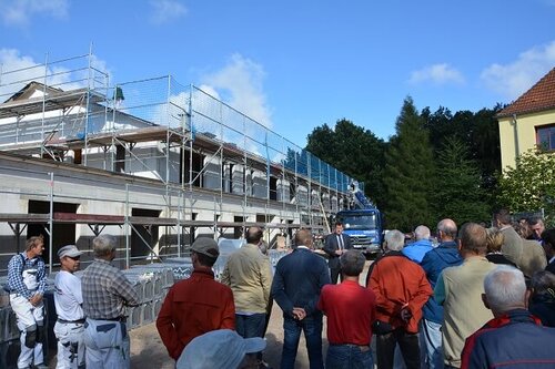 Im Juni erst fand die Grundsteinlegung für den Neubau des Ernst-Moritz-Arndt-Heims statt, inzwischen sind schon Rohbau und Dach fertig. Mit einem traditionellen Richtfest wurde diese Etappe am 30. August feierlich abgeschlossen.